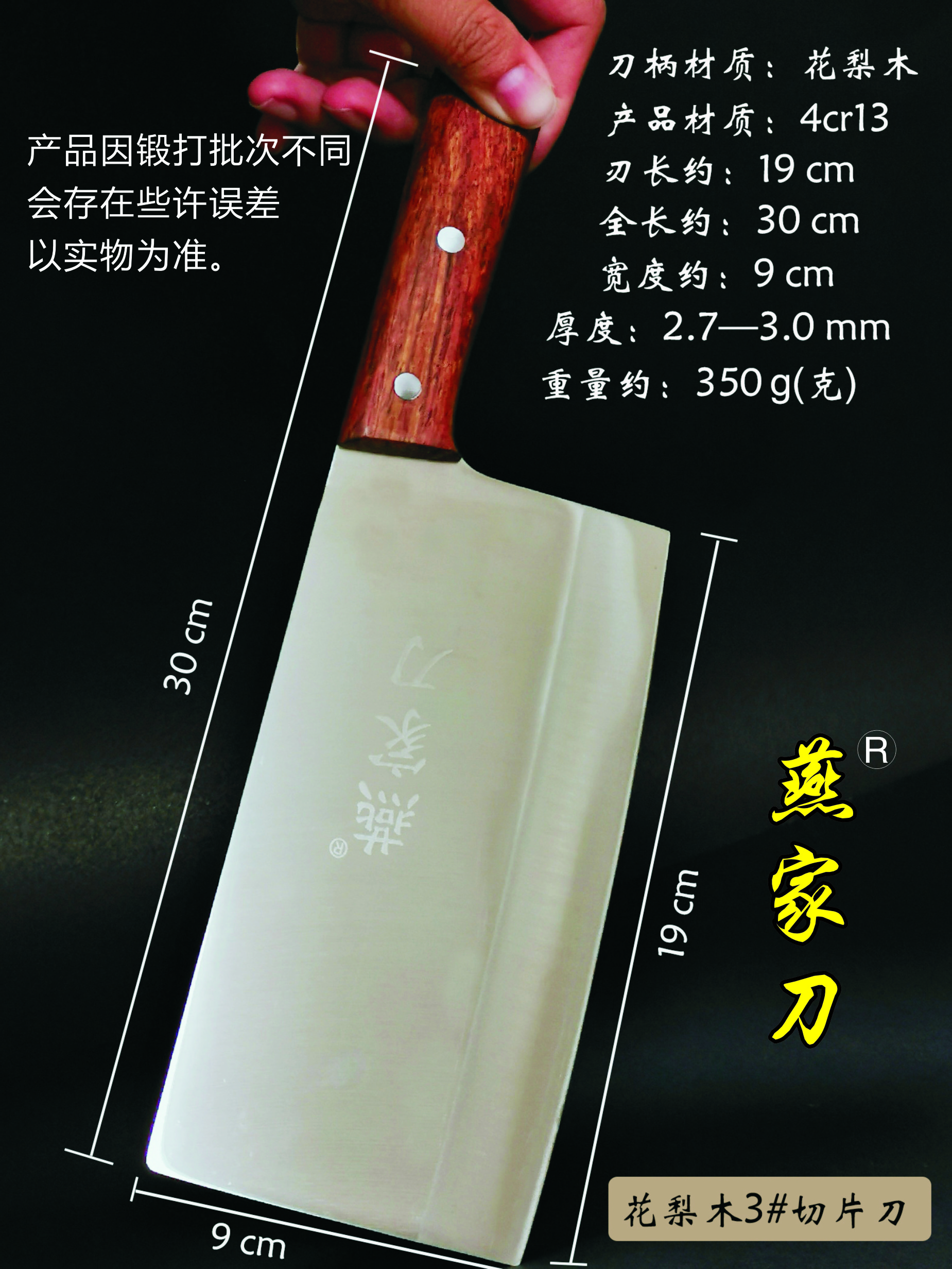 樂山燕家刀具有限公司(公司前身為燕佳鐵匠鋪),公司坐落于美麗的佛都之鄉樂山嘉州,在全國各地有上千家代理經銷點,公司專業銷售、設計、制作各類刀具。秉承一貫鍛造三精要求,即選料精、用料精、工藝精。所選材料全部產自滇東鐵礦優產區。本品牌刀具堅持千挑萬選為材,千錘百煉為刀的手工鍛造工藝宗旨。具有鋒利耐磨、持久耐用,用料上乘,硬度高、韌度強的特點!